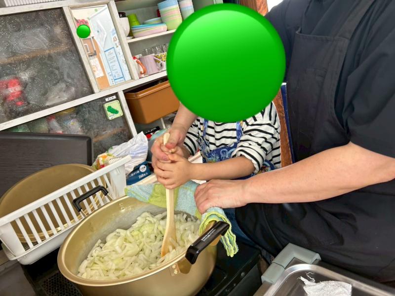それでも、炒める時には「目が痛ーい!」と目をショボショボさせながら頑張っているお友達もいましたよ。
