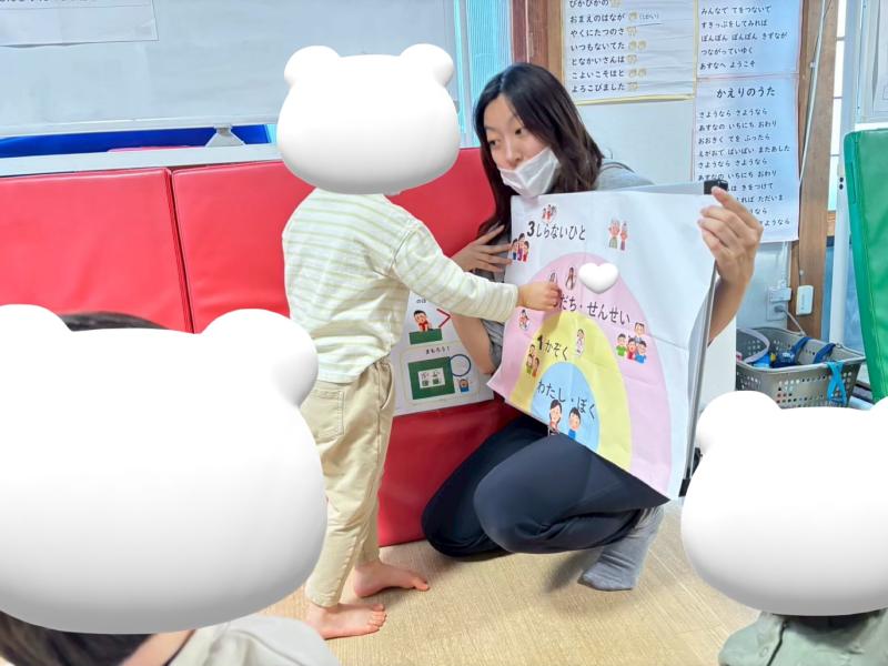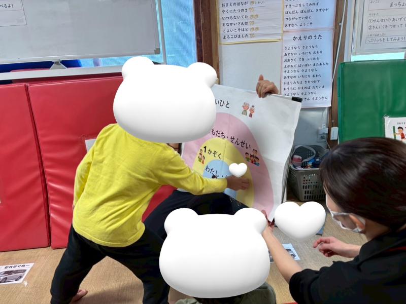 「心の距離感」は、(わたし、ぼく)1(かぞく)2(おともだち、せんせい)3(しらないひと)との距離間を知る療育です☆彡